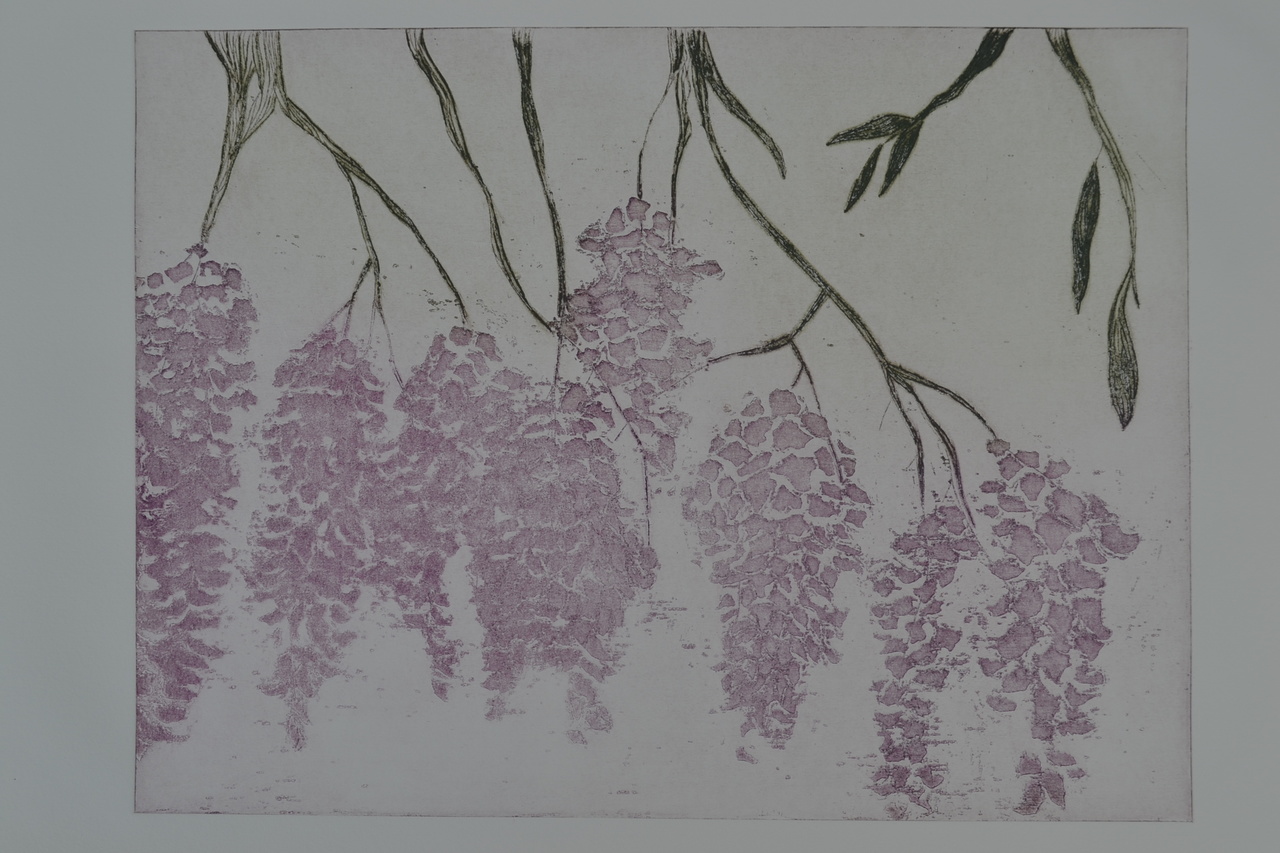 Blauwe regen rose / Wisteria rose / La Glycine rose - droge naald en aquatint - meerkleuren druk - oplage 1/5