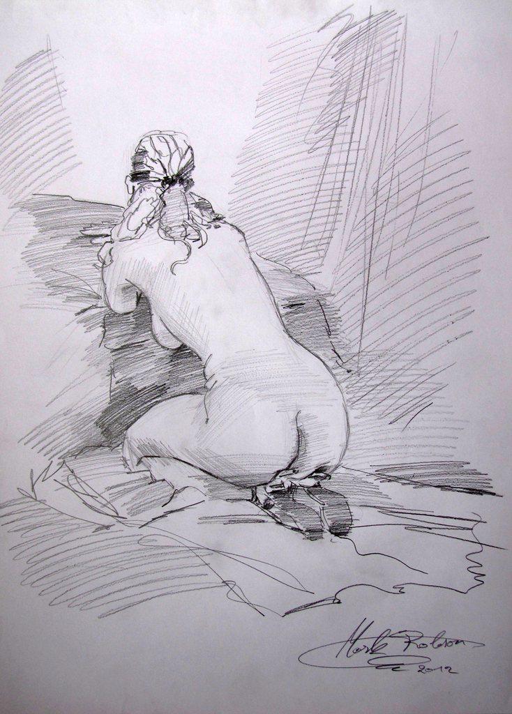 Iets van garnering maakt soms een groot verschil... bij een studie naar charmant naaktmodel - Model: de gedreven Miss J - Pastelpotlood op Cansonpapier