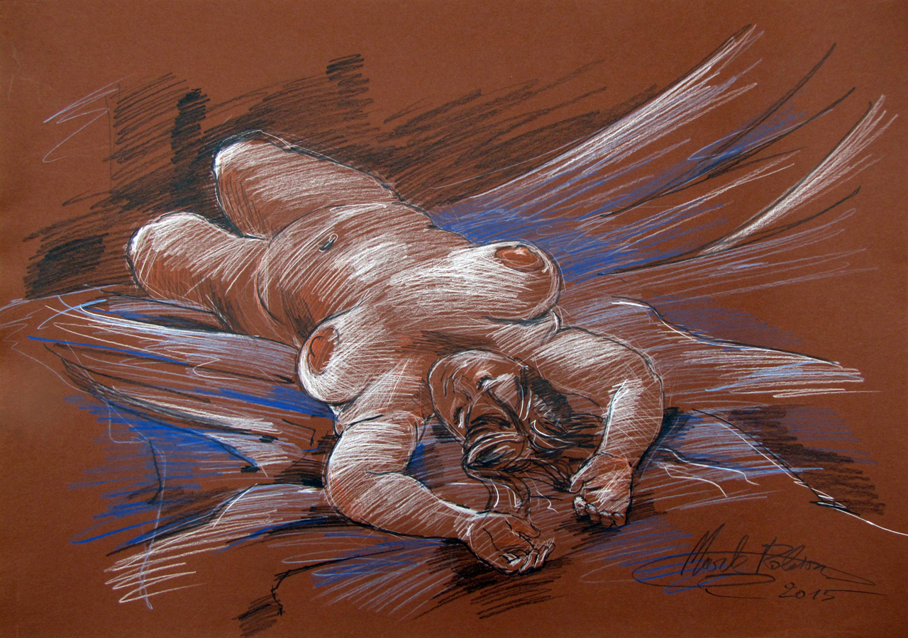 Model: Marieke Oldenburger - Zonnig weer in het atelier - Pastelpotlood op Cansonpapier