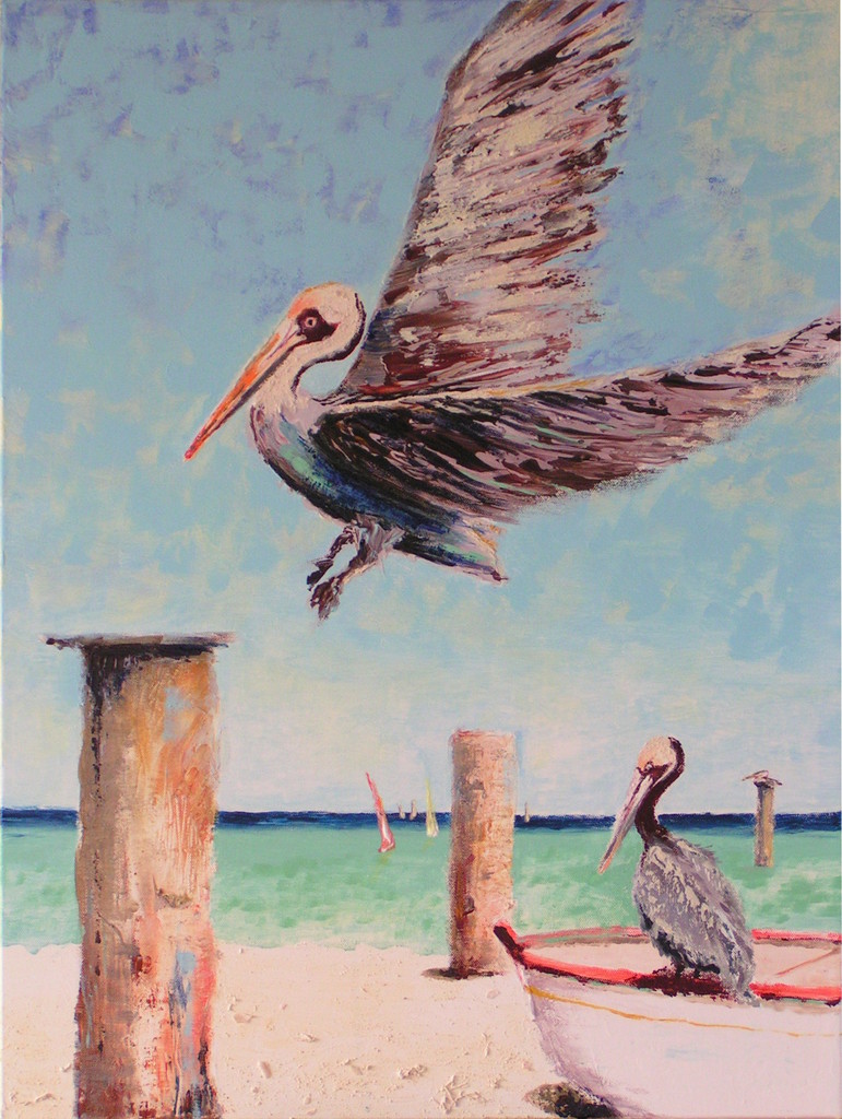 Acryl Canvas Doek Acrylic Beach Paint Pelikaan Pelican Sea