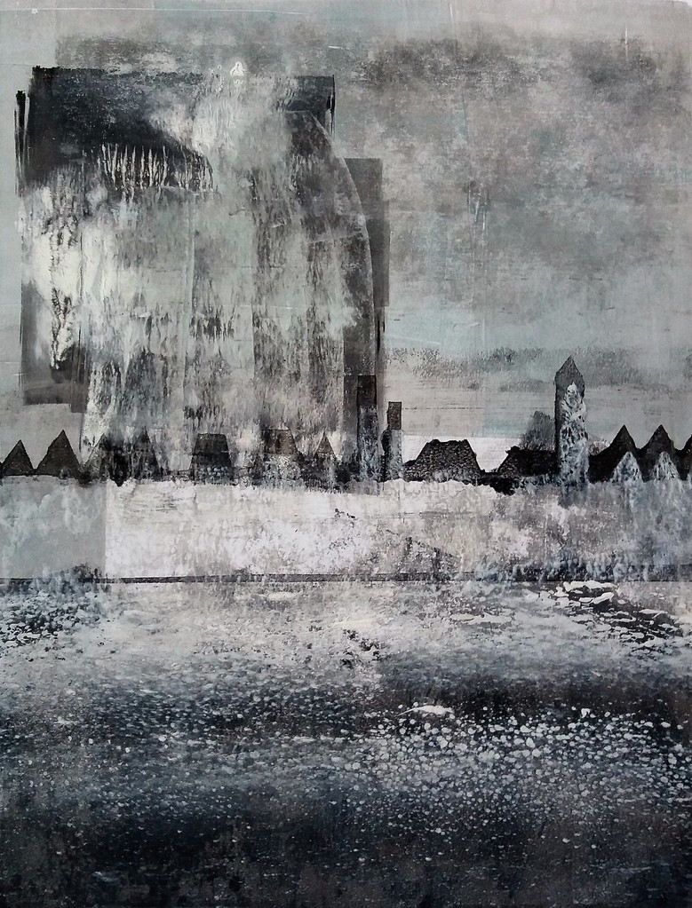 Olieverf Stad Grijstinten Monoprint