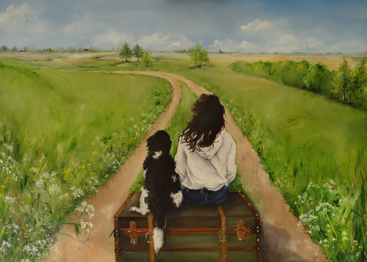 De liefde tussen mens en dier komt tot uitting in dit mooie grote doek. Friese Stabij Breezer & baasje Trea. Onvoorwaardelijke liefde.....