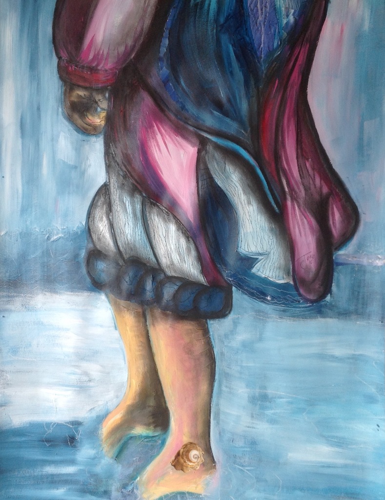 Blauw Water Tijdschrift Acrylverf Houtskool Voeten Benen Stift