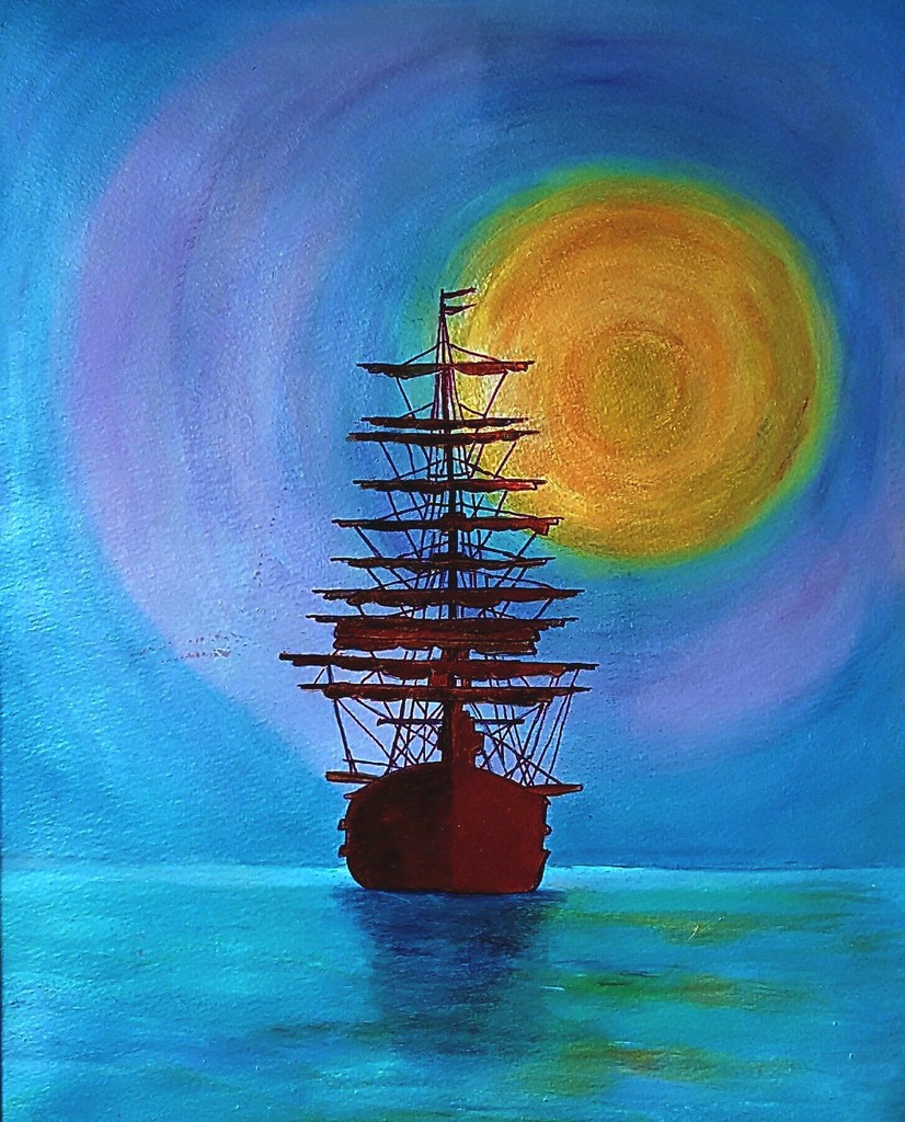 Zeilschip bij windstilte in de tropische zone, die ook wel paardebreedten wordt genoemd.
