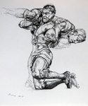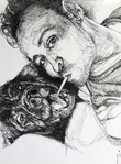 Geïnspireerd door foto's, films, stripboeken, sport, dieren, theater en andere kunsten en modellen teken en schilder ik portretten en modellen.