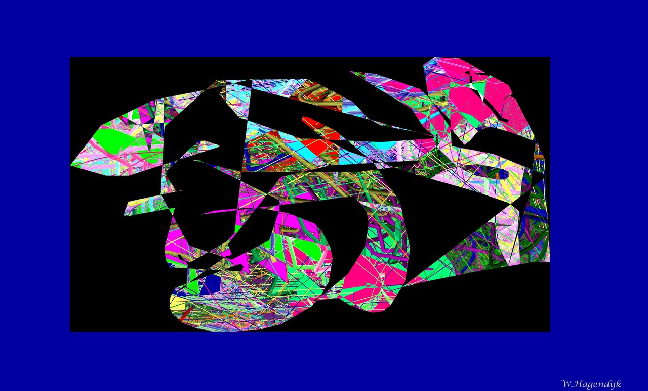 Computertekening abstract digital art. Lijst behoort bij de tekening.