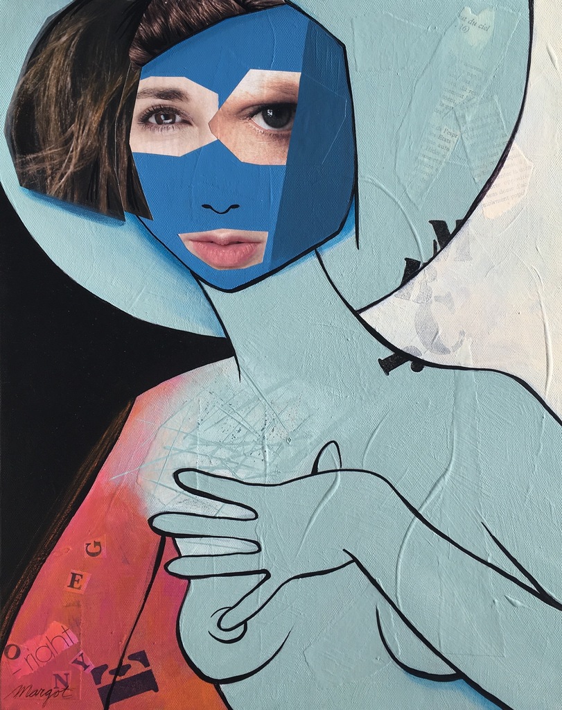 Margot kan zich niet tot één stijl beperken. Ze flitst van portretten naar collages naar abstractie naar illustraties. Het is maar net hoe de pet staat. Maar één ding staat vast: kunst is haar passie!