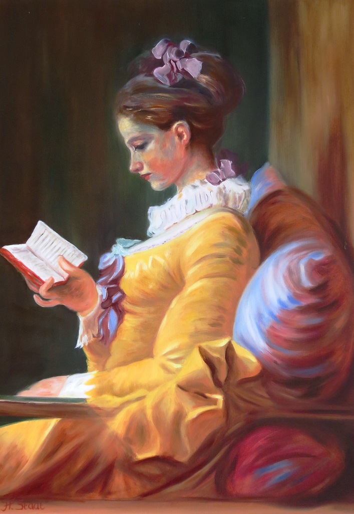 Schilderij naar een werk van Jean-Honore Fragonard, The Reader, ca.1770-1772