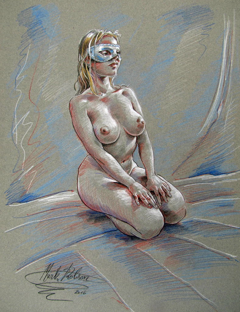 En indien je een ander soort van muze wenst..., dan draag ik een masker voor jou... - Model: Malena - Pastelpotlood op Cansonpapier - (Lyrics geïnspireerd door Leonard Cohen - "I'm your Man" - 1987)