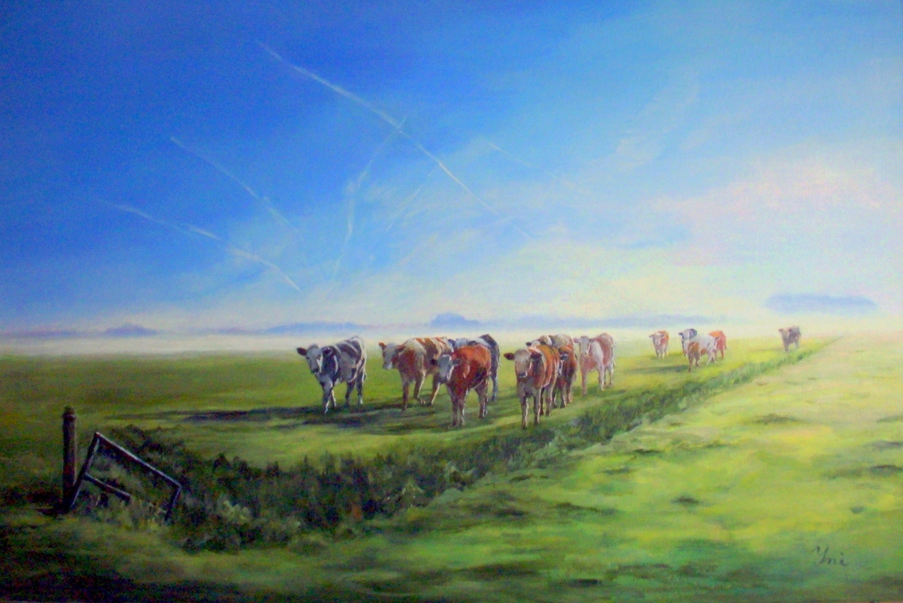 De koeien van mijn neef op een zomerse dag op weg om gemolken te worden.
