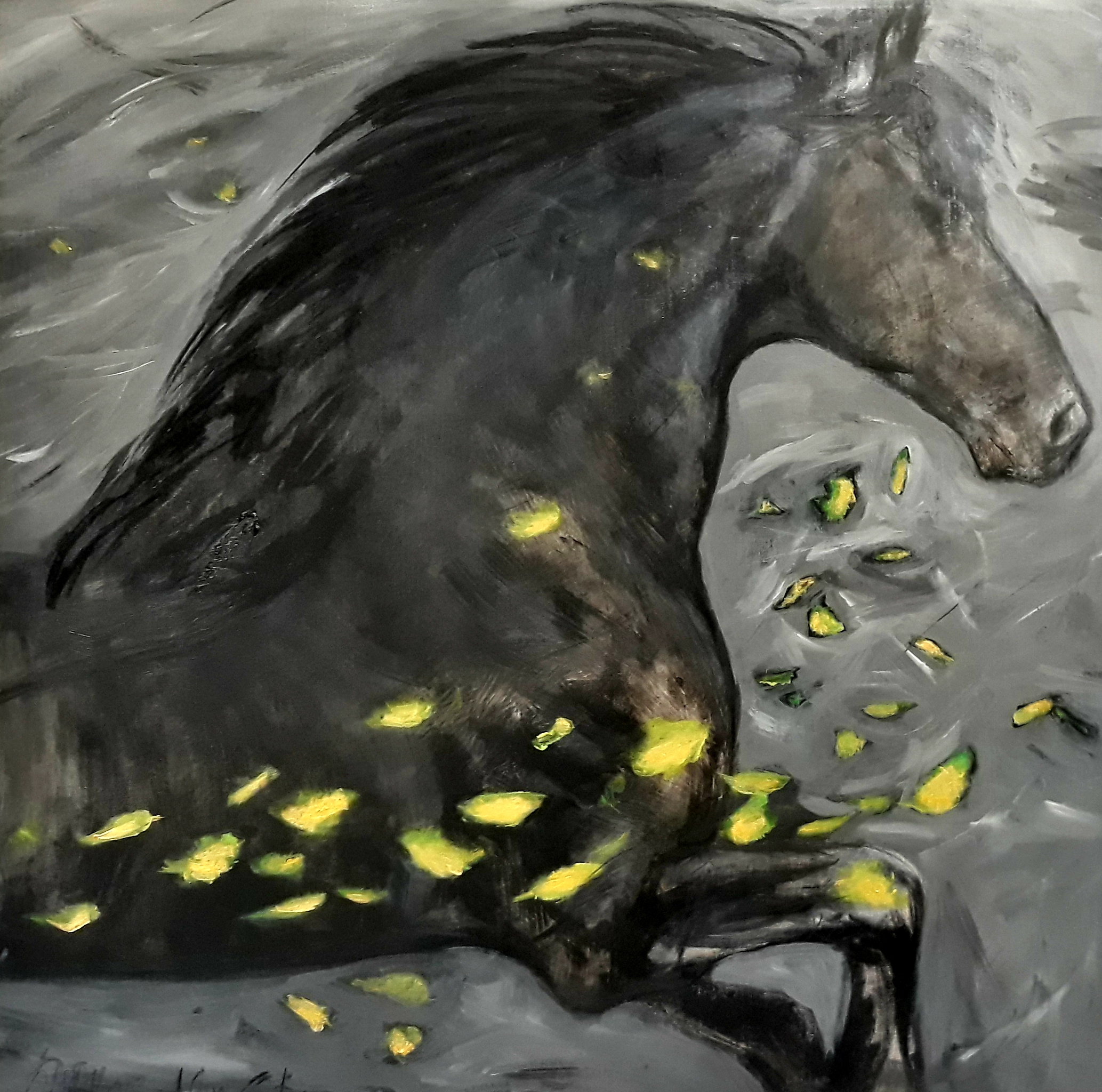 Zwart In Bladeren Herfst Paard Black Leaves De Horse Storm A Fries Rennend Running Autum Frisian Herftbladeren