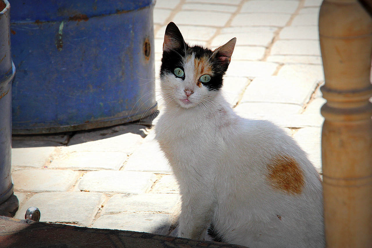 Een gelukspoes, driekleuren met witte buik... zo een poes wil toch iedereen? Nieuwsgierigheid en geluk.