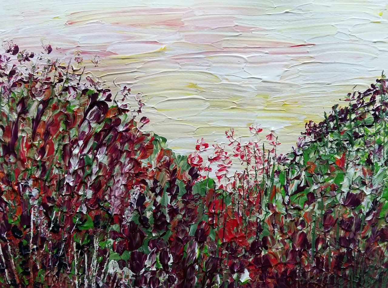 Untitled nr. 024. Een bloemenlandschap vol met rode bloemen/klaprozen. Zonder passe-partout/lijst.