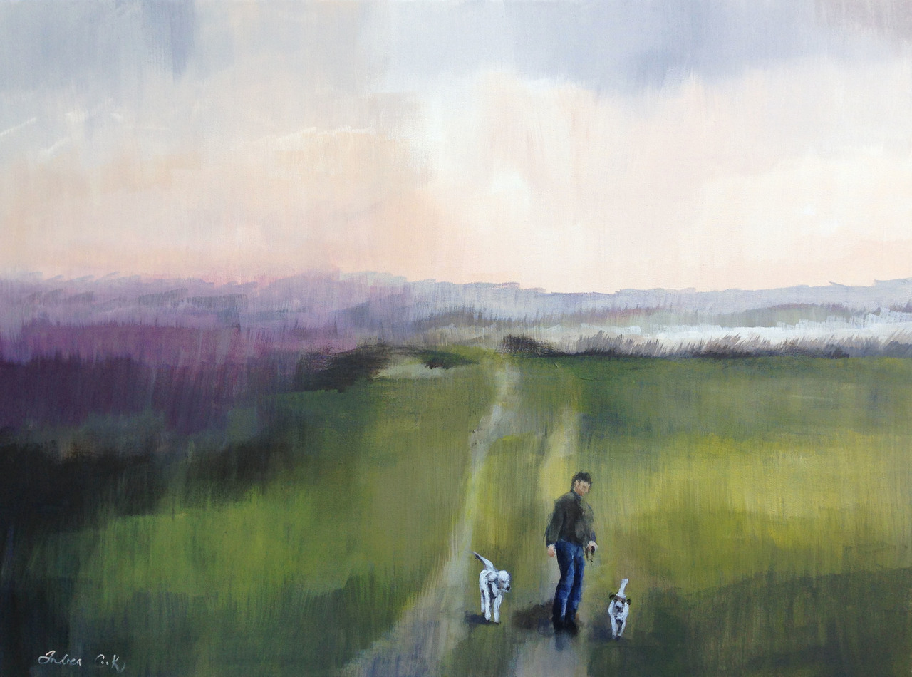 Landschap Paars Groen Honden Green Roze Pastel Purple Landscape Figuren Opdracht Pink Aubergine Impressionist Dogs