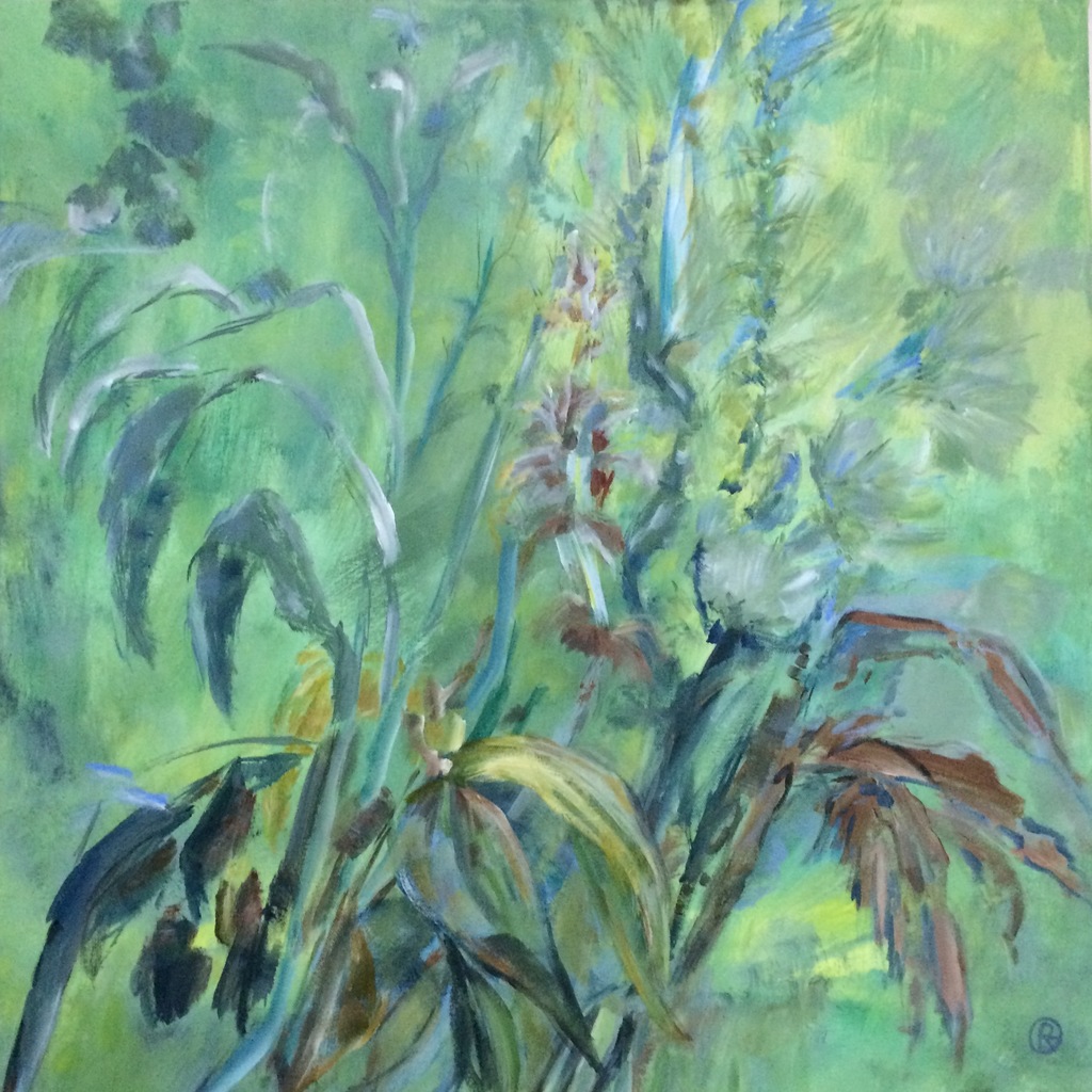 Buiten is de inspiratie, binnen verwerk ik met kleur, vorm, lijn en contrast de indrukken. Ik verander ze en laat ze soms helemaal los. De verbeelding gaat met me op de loop. Zo kan figuratief abstract worden en ontstaat er soms een totaal andere sfeer.