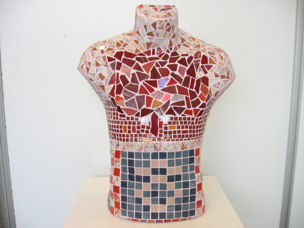 Mijn naam is Peter de Keijzer. Ik beplak kunststof torso's met glasmozaïeksteentjes.