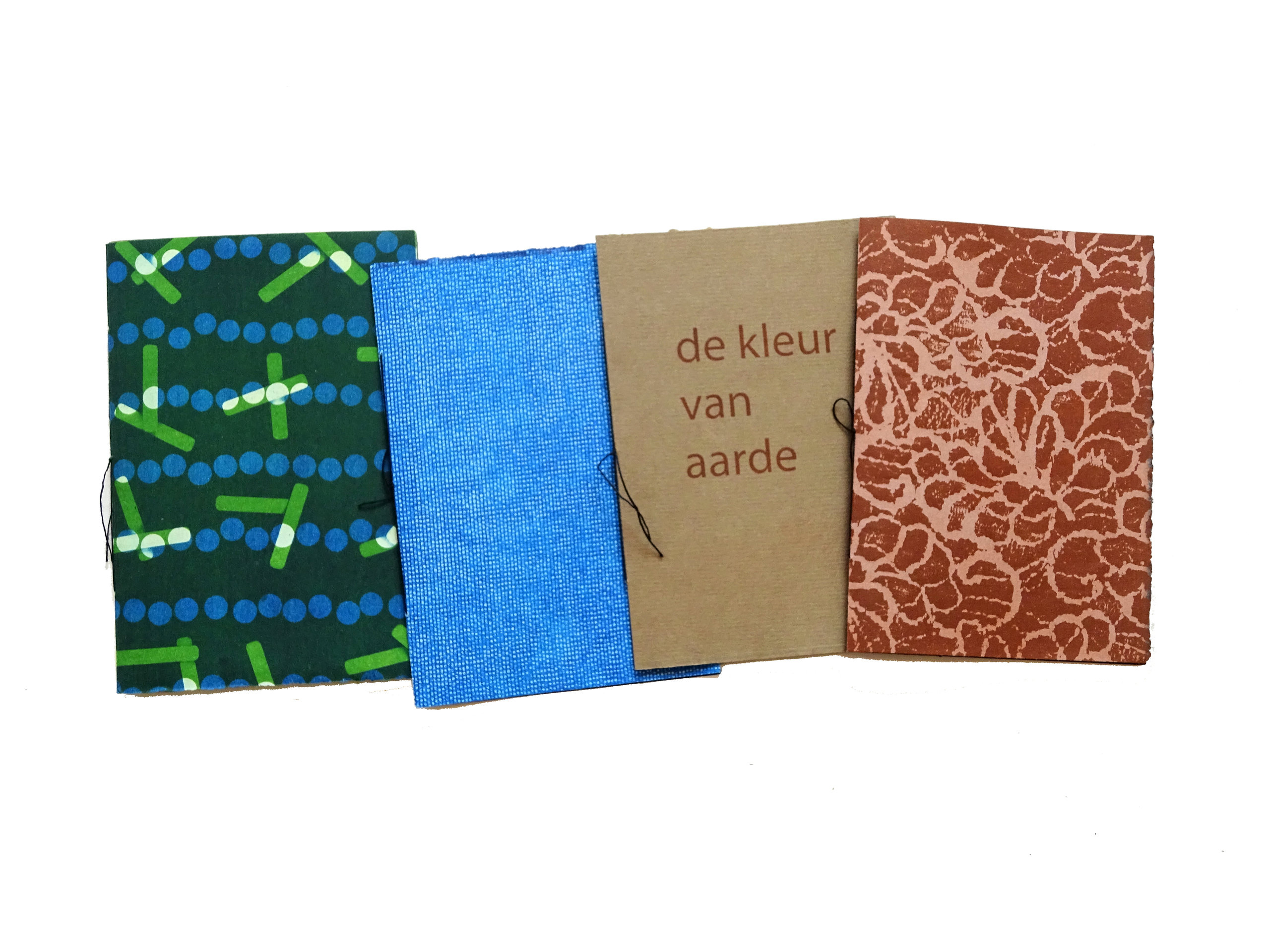 boekjes bruin, blauw en groen.