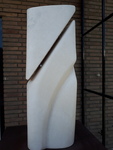Ik maak zowel abstract als figuratief werk in steen. Soms geeft de vorm van de steen het werk aan, een andere keer schets ik vooraf.