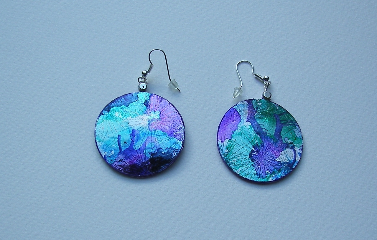 Oorbellen van papier met een van het iriserende laagje van een CD