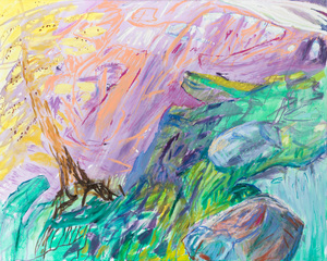 Sophie Bekkering toont in haar schilderijen en keramiek de grootse natuur. Begonnen vanuit wandelingen door de Gelderse bossen is ze inmiddels de bomen nagereisd tot aan en over de boomgrens. De ongerepte alpine ruimte waarin bomen, rotsen en water figureren.is haar speelveld.In haar schilderijen verbeeldt ze de onderliggende krachten van deze stille omgeving door middel van haar expressieve toetsen en levendige kleurcontrasten.
