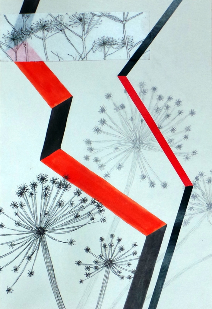 waterverf, tape, potlood, fineliner, papier