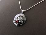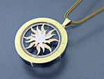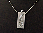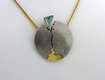 Hanger die symbool staat, voor een tussen fase in het leven. Het leven is verandering. Je weet nog niet precies hoe die nieuwe fase werkt. Je hoopt altijd op mooier, beter. Gemaakt van goud, zilver, titanium, karneool met micro kristallen.