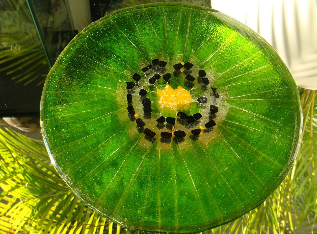 Glasobject, schijf kiwi vrucht.