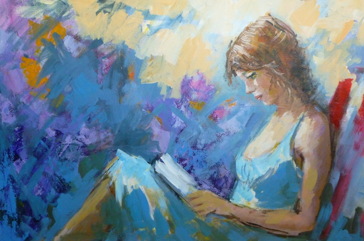 Figuratief Blauw Vrouw Kleurrijk Impressionistisch Lezend Bart Buijsen
