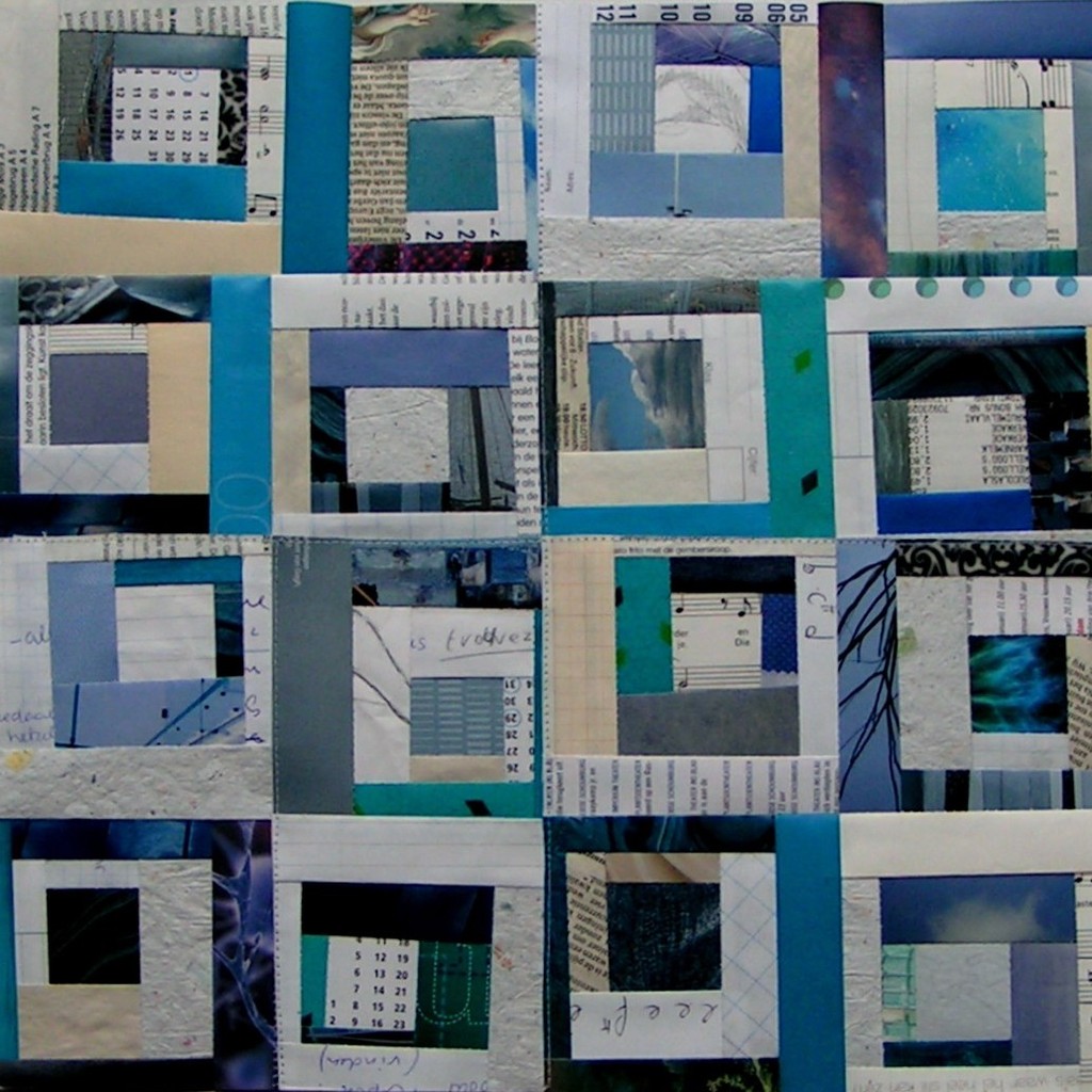 Collage, delen aan elkaar gestikt. Te combineren met de andere gekleurde Snippers, zie voorbeeld bij c.v. kunstenaar.