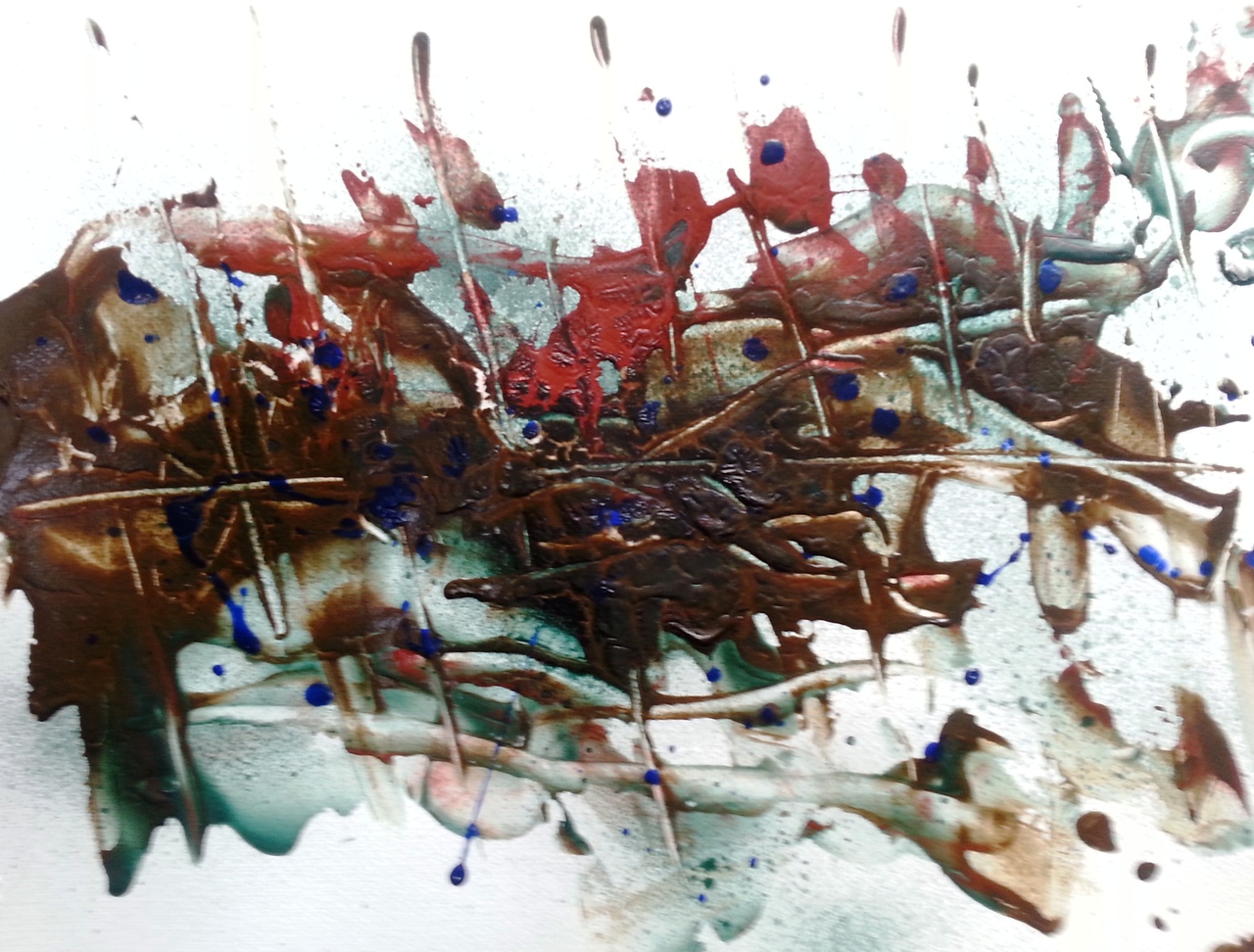 Abstract landschap op papier, mixed media.