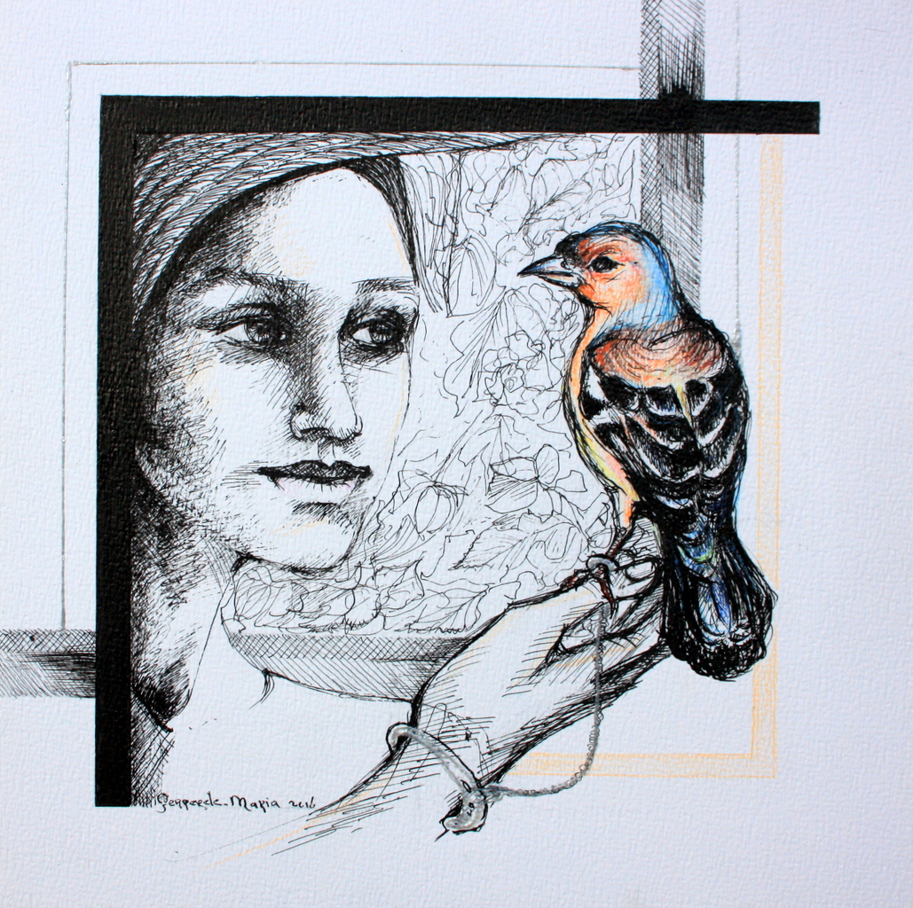 Gezicht Kleur Ketting Vrijheid Vogeltje Pentekening Zwart-wit
