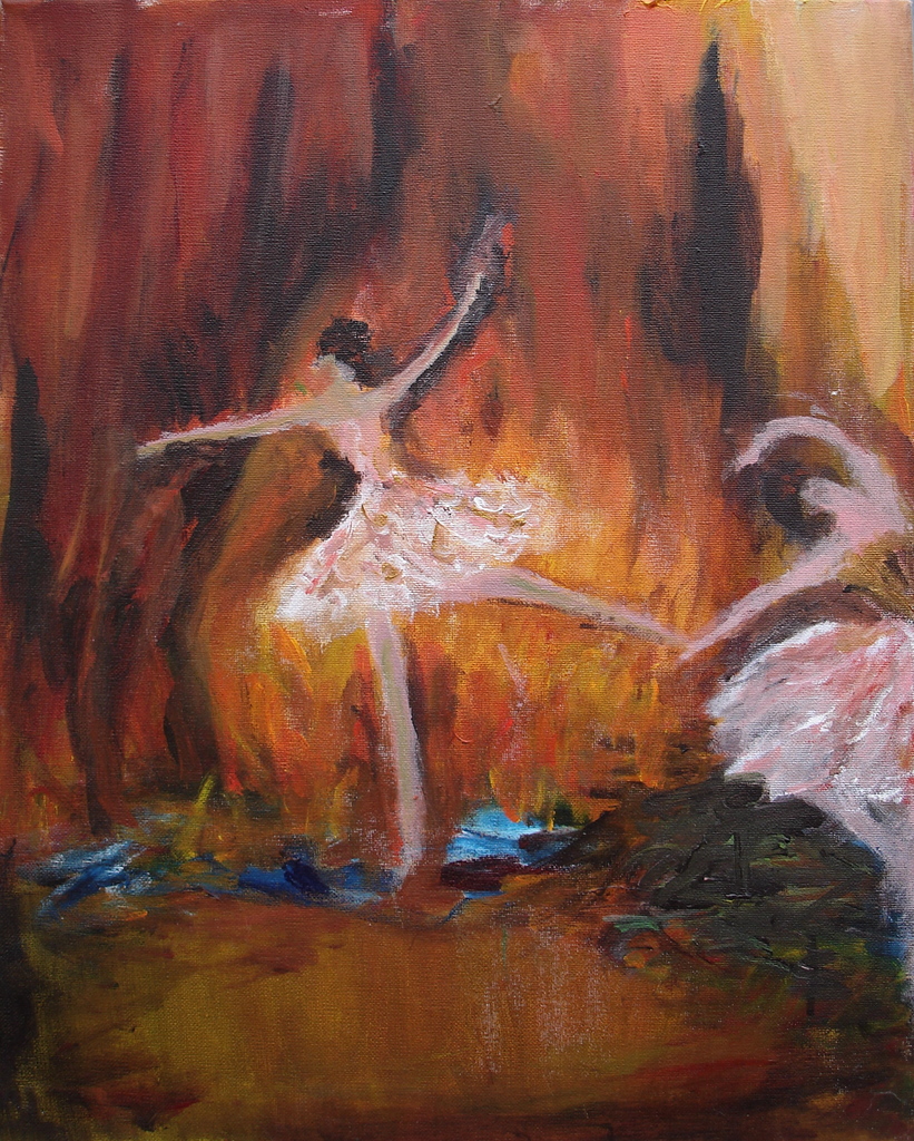 Mijn naam is Joyce Houtzagers. In mijn werk probeer ik beweging uit te beelden en ruimte te laten voor de fantasie van de kijker. De beelden gaan vaak over mijn onvervulde passies voor bv dans en paarden. Ik heb met het schilderen een weg gevonden een innerlijke wereld zichtbaar te maken. Beweging in beperking is wat mij inspireert en fascineert.