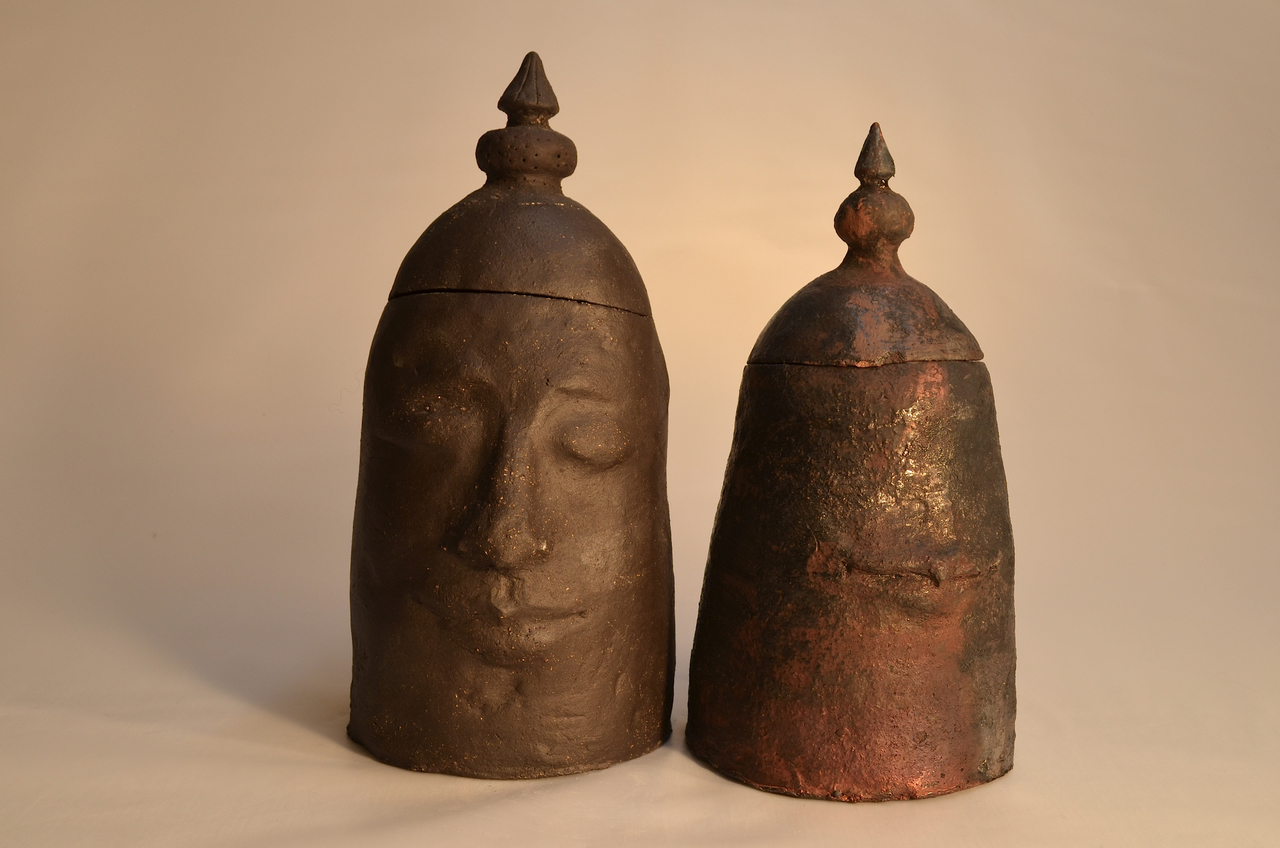 Karin van Leeuwen (Alphen a/d Rijn), keramist autodidact. opleiding KABK te Den Haag en Rijksacademie voor Beeldende Kunsten Amsterdam. Werken met klei, is voor mij synoniem voor geluk.Creeren en laten ontstaan is de voortdurende uitdaging.Mijn figuren vertellen hun verhaal over kwetsbaarheid; ze hebben een ziel. Ook in mijn urnen en vazen toon ik dit.Traditionele primitieve stooktechnieken hebben mijn speciale voorkeur. Ik werk het liefst met pure klei, de combinatie van verschillende soorten en kleuren, gedecoreerd met sulfaten, oxides of engobes.