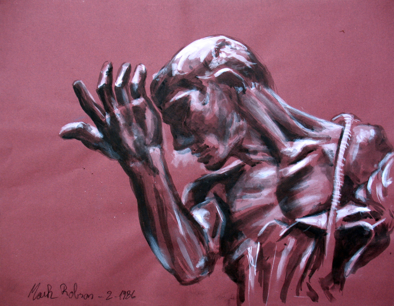 Studie van een beeld in het Koninklijk Museum van Schone Kunsten, te Antwerpen. - Zwarte en Witte Gouache op Cansonpapier