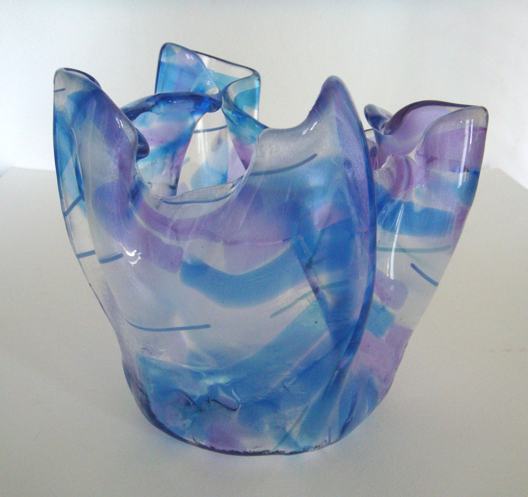 Blauw Glas Blue Glaskunst Vase Glass Glassart Wrinkled Scheltema Bullseyeglass Louky Loukyscheltema Plooivaas