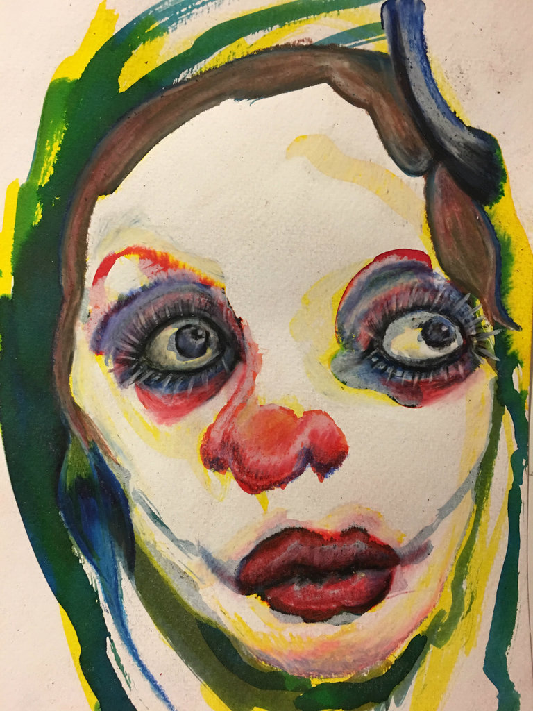 Schilderij op papier in gemengde technieken.