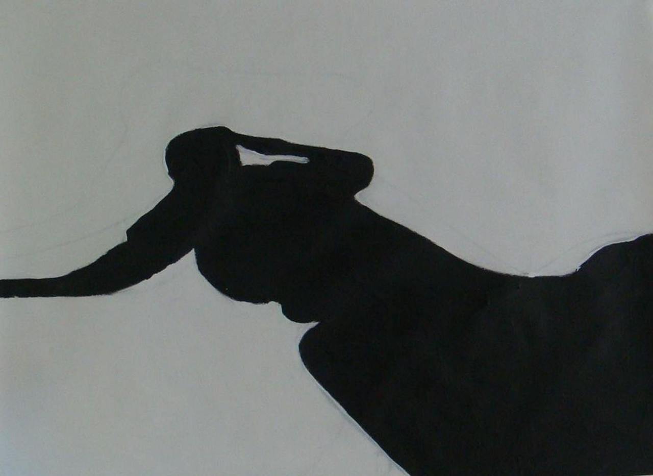 Schaduwvlek in gesso en acryl op doek.