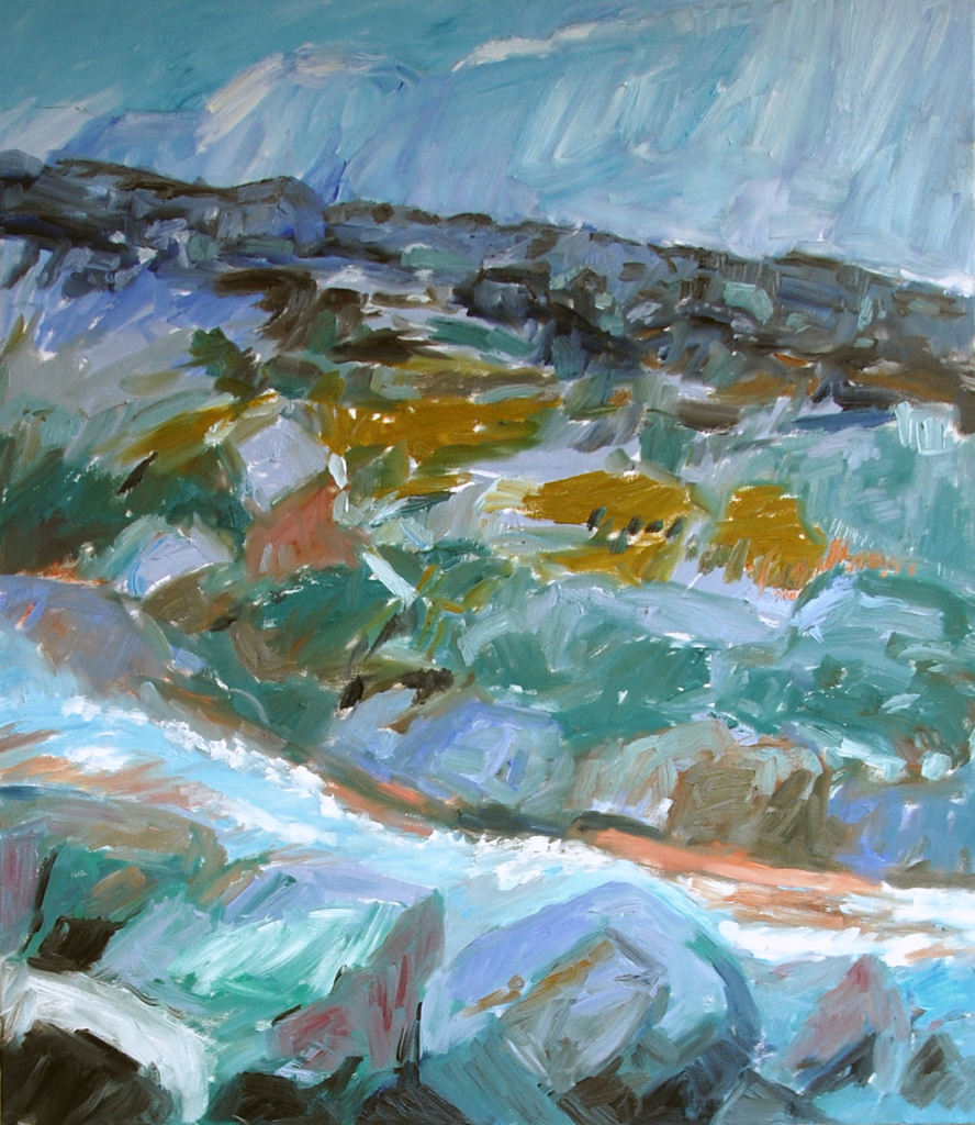 Sophie Bekkering toont in haar schilderijen en keramiek de grootse natuur. Begonnen vanuit wandelingen door de Gelderse bossen is ze inmiddels de bomen nagereisd tot aan en over de boomgrens. De ongerepte alpine ruimte waarin bomen, rotsen en water figureren.is haar speelveld.In haar schilderijen verbeeldt ze de onderliggende krachten van deze stille omgeving door middel van haar expressieve toetsen en levendige kleurcontrasten.