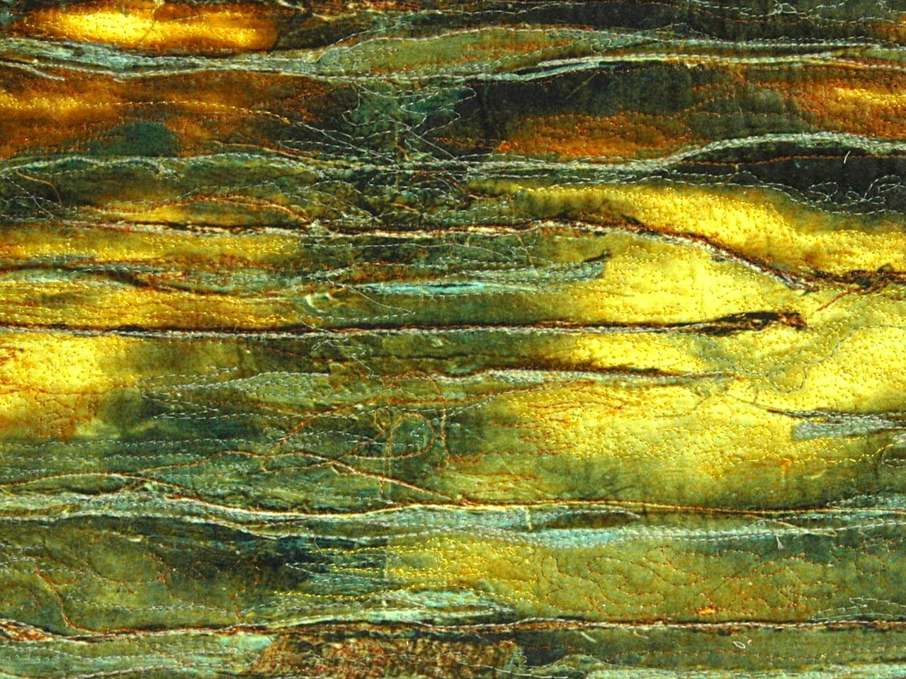 Ik ben een materialen mens, en maak samenvoegingen van verschillende materialen; foto’s, stoffen en borduursels, soms ook gecombineerd met hout, lood en steen, op wisselende formaten