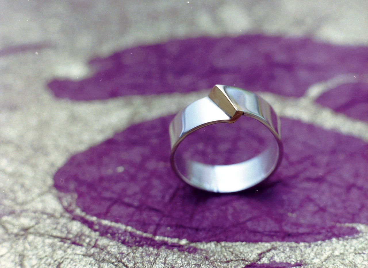 Ring. Zilver met 18kt goud. 1mm dik op 7mm breed (op bestelling)