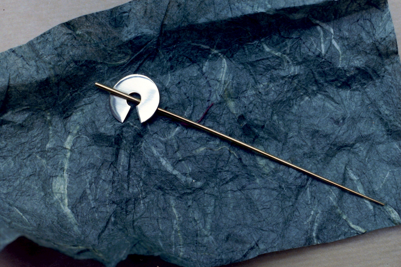 Broche. Zilver met pin in messing. 120mm totale lengte. 20mm diameter