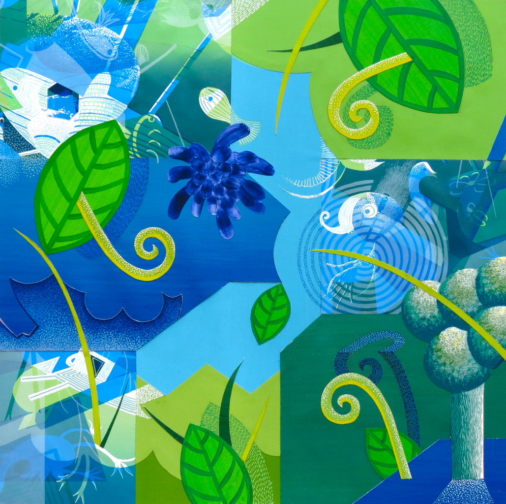 Mijn werk is zeer kleurrijk. Ik balanceer graag op de grens tussen figuratief en abstract, waarbij ik mijn eigen droomwereld creeer. Mijn inspiratie haal ik uit de natuur en het materiaal.
