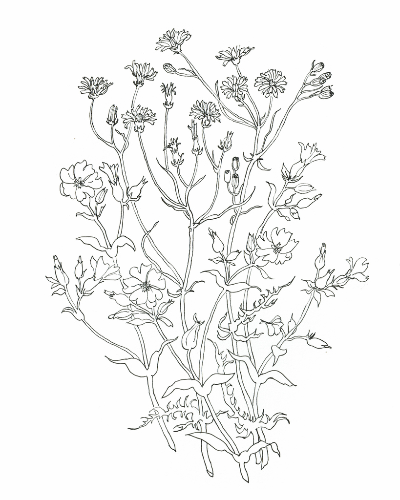 Wit Zwart Tekening Black White Inkt Drawing Nature Veldbloemen Ink Koekoeksbloem Wildflowers Hawksbeard Streepzaad Campion