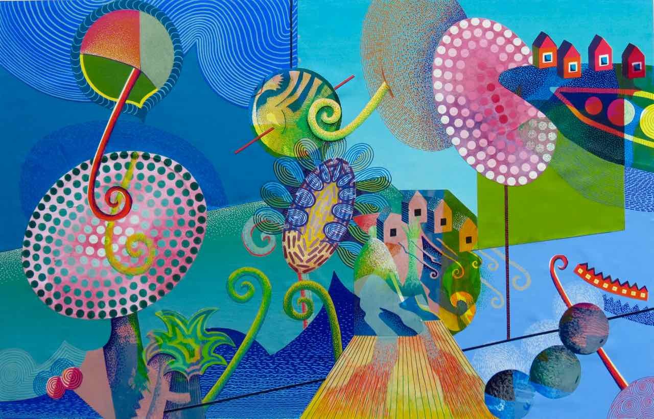 Mijn werk is zeer kleurrijk. Ik balanceer graag op de grens tussen figuratief en abstract, waarbij ik mijn eigen droomwereld creeer. Mijn inspiratie haal ik uit de natuur en het materiaal.