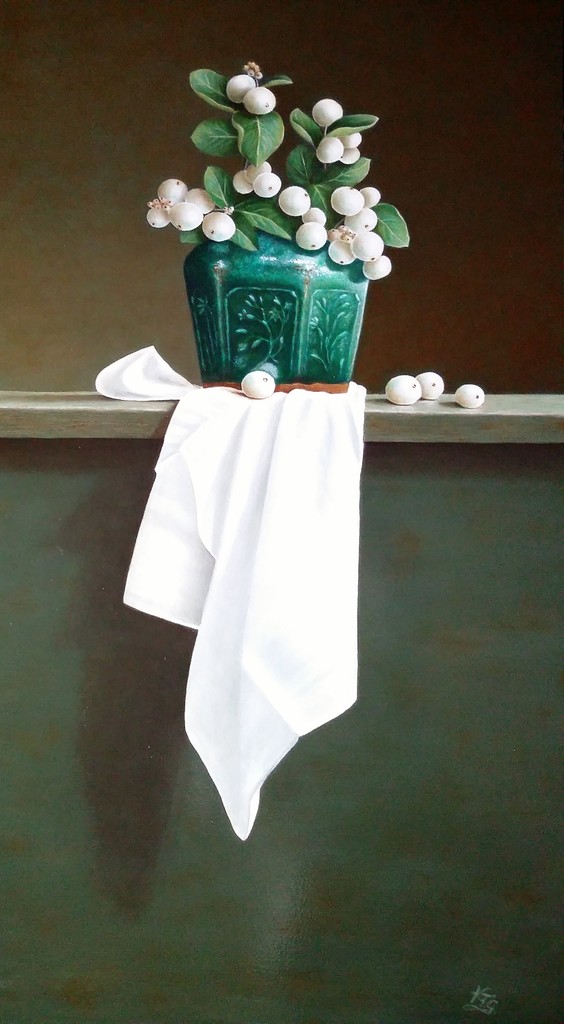 Stilleven White Realisme Fijnschilderen Gemberpot Sneeuwbes Berries Gingerjar
