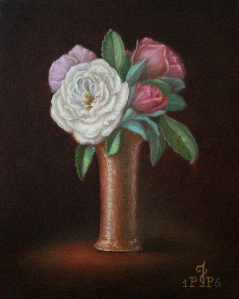 Rose Bruin Koper Vaas Herinnering Rozen Realistisch In Dutch Painting New White Brown Flower Still Life Realism Oude Witte Roos Kaart Roodbruin Verjaardag Bloemstilleven Ansichtkaart