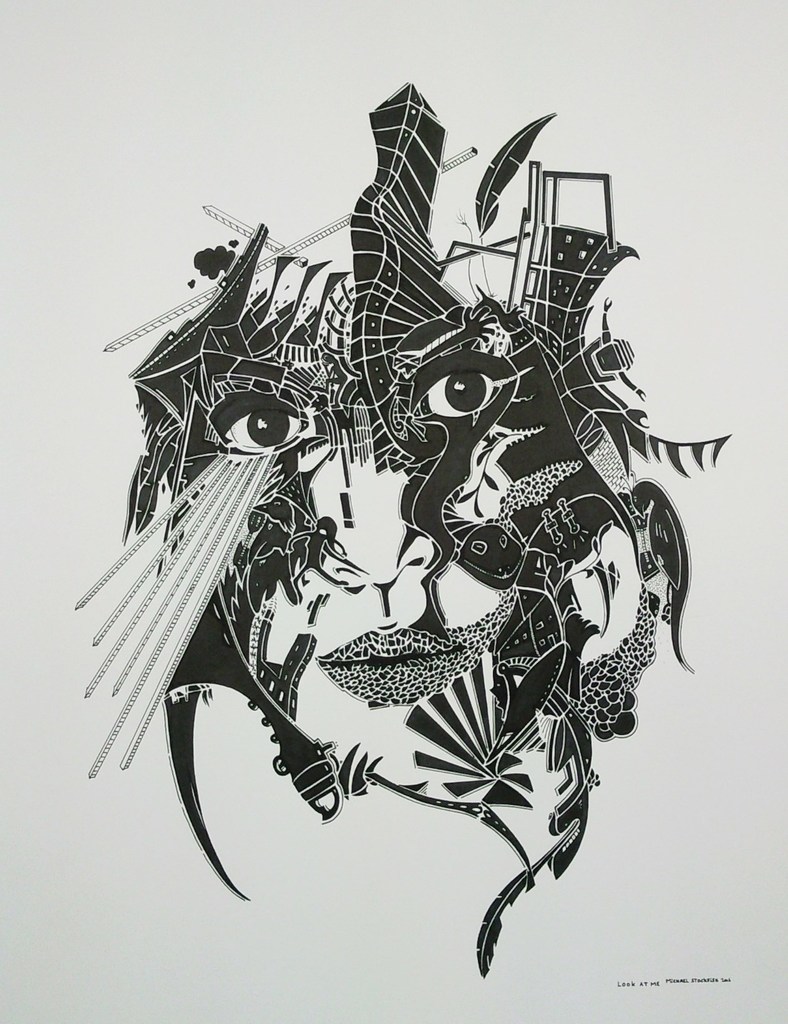 Gezicht Ogen Tekening Inkt Drawing Zwartwit Michael Ink Black&white Stockfish