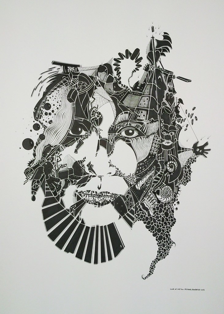 Gezicht Ogen Tekening Inkt Drawing Zwartwit Michael Ink Black&white Stockfish