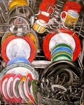 Dit werk is ontstaan vanuit een collage. De bouwput van 2011 bij het Centraal Station, de rondvaartboten in de gracht en de fietsen tegen de brug net voordat je de Warmoesstraat in loopt. De foto's zijn gemaakt enkele dagen voor het einde van het jaar. Koud, mistig. Vandaar dit enigzins verstilde palet.