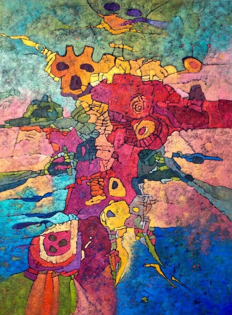 Abstracte schilderijen en dito beschilderde objecten in een stijl die ligt tussen geraffineerde eenvoud en georganiseerde chaos